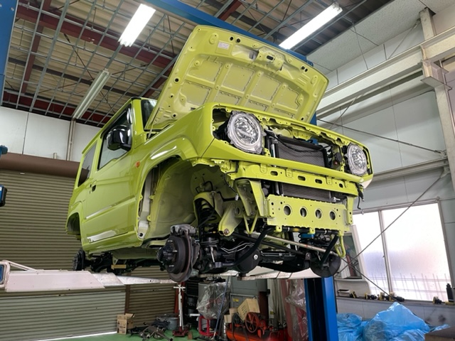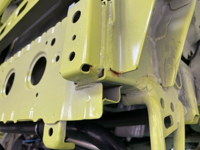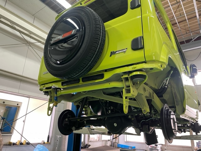 ジムニーのご入庫です。前モデルのJB23型は錆びやすく有名?でしたが現行JB64Wは純正でチッピングされている箇所も増えているので改善はされているようです。しかし、約2年2万キロでアチコチから錆が発生し始めたのでNOXUDOL施工をして欲しいとご依頼いただきました。